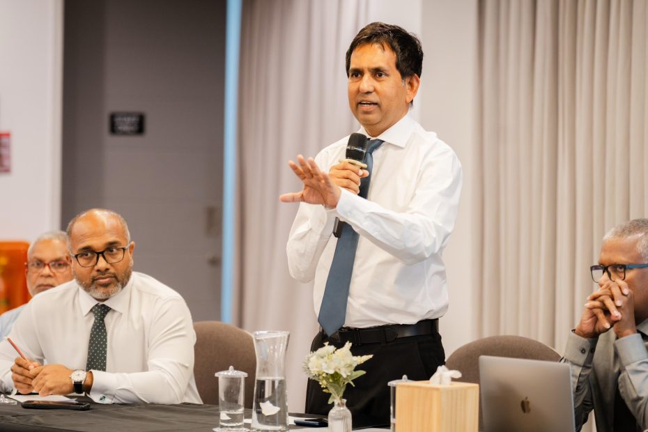 މިނިސްޓަރއޮފްއިކޮނޮމިކްޑިވެލޮޕްމަންޓްއެންޑްޓްރޭޑްމުޙައްމަދުސަޢީދު،މެދުއިރުމަތީގައިމިހާރުކުރިއަށްދާހަނގުރާމައާގުޅިގެން،އިމާރާތްކުރުމުގެދާއިރާއަށްދިމާވެފައިވާގޮންޖެހުންތަކާގުޅޭގޮތުން،އެވިޔަފާރީގައިހަރަކާތްތެރިވާފަރާތްތަކާބައްދަލުކުރައްވައިފައެވެ. މިމަސައްކަތުގައިދެފަރާތުންގުޅިގެންގޮންޖެހުންތަކުންއަރައިގަތުމަށްމަސައްކަތްކުރުމަށްމަޝްވަރާކުރެވުނެވެ.  އަދިރާއްޖޭގެއިޤުތިޞާދުގައިހަރަކާތްތެރިވާއެކިއެކިސިނާއަތްތަކަށްދިމާވަމުންދާގޮންޖެހުންތައްދެނެގަނެ،ގުޅިގެންހައްލުހޯދުމަށް،އެފަރާތްތަކާއެކުވެސްމަޝްވަރާތައްކުރެވެމުންދާކަންދަންނަވަމެވެ.