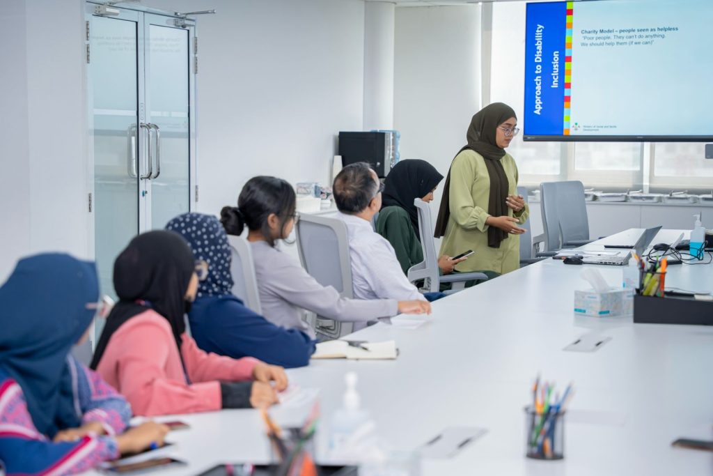 A session was conducted for employees of the Ministry of Economic Development and Trade regarding the importance of establishing a favorable work environment for persons with disabilities in offices.