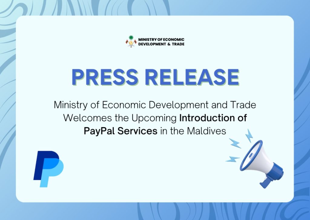 Home » Press Release: Ministry of Economic Development and Trade Welcomes the Upcoming Introduction of PayPal Services in the Maldives