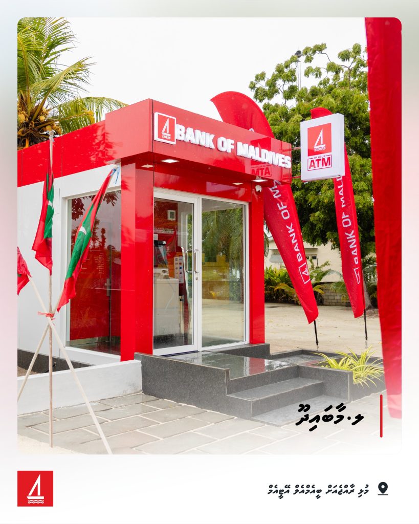 މާލީ މުހިންމު ހުރިހާ ޚިދްމަތްތަކެއް އެއްތަނަކުން ލިބޭނެފަދަ އިންތިޒާމެއް، ރާއްޖޭގެ މީހުންދިރިއުޅޭ ކޮންމެ ރަށެއްގައި ޤާއިމުކުރުމަށް ސަރުކާރުން ކަނޑައަޅާފައިވާ ސިޔާސަތުގެ ދަށުން، ދިވެހިރާއްޖޭގެ މީހުންދިރިއުޅޭ ހުރިހާ ރަށެއްގައި އޭޓީއެމް ބަހައްޓައި އޭޓީއެމްގެ ޚިދްމަތްތައް ފޯރުކޮށްދިނުމަށްޓަކައި ޢިޤްތިޞާދީ ތަރައްޤީ އާއި ވިޔަފާރިޔާ ބެހޭ ވުޒާރާ އާއި ބޭންކް އޮފް މޯލްޑިވްސްއާއި ދެމެދު އެއްބަސްވުމެއްގައި ސޮއި ކުރެވުނީ 7 ނޮވެންބަރު 2024 ގައެވެ.