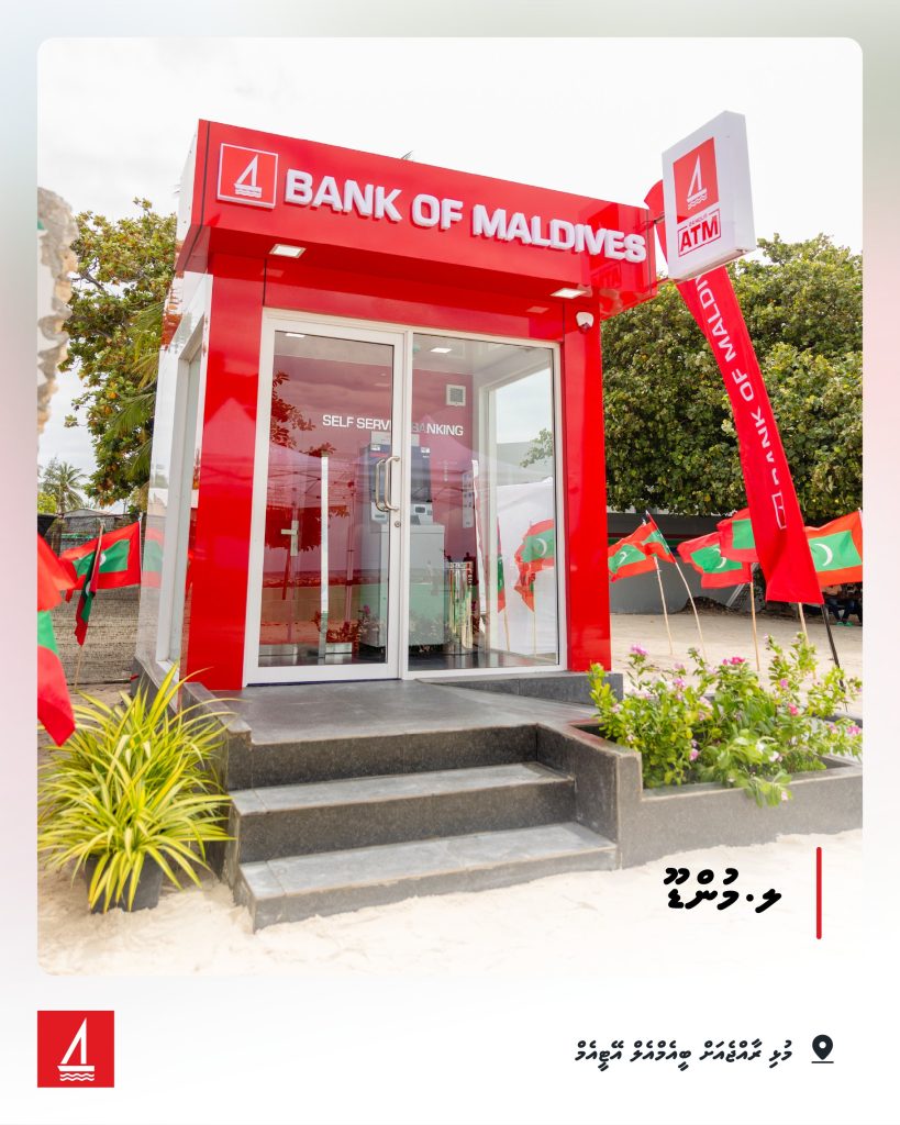 މާލީ މުހިންމު ހުރިހާ ޚިދްމަތްތަކެއް އެއްތަނަކުން ލިބޭނެފަދަ އިންތިޒާމެއް، ރާއްޖޭގެ މީހުންދިރިއުޅޭ ކޮންމެ ރަށެއްގައި ޤާއިމުކުރުމަށް ސަރުކާރުން ކަނޑައަޅާފައިވާ ސިޔާސަތުގެ ދަށުން، ދިވެހިރާއްޖޭގެ މީހުންދިރިއުޅޭ ހުރިހާ ރަށެއްގައި އޭޓީއެމް ބަހައްޓައި އޭޓީއެމްގެ ޚިދްމަތްތައް ފޯރުކޮށްދިނުމަށްޓަކައި ޢިޤްތިޞާދީ ތަރައްޤީ އާއި ވިޔަފާރިޔާ ބެހޭ ވުޒާރާ އާއި ބޭންކް އޮފް މޯލްޑިވްސްއާއި ދެމެދު އެއްބަސްވުމެއްގައި ސޮއި ކުރެވުނީ 7 ނޮވެންބަރު 2024 ގައެވެ.